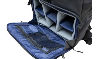 Bederní a hrudní popruhy si nastavíte podle potřeby. Kvalitně podšité ramenní popruhy poskytují vysoký komfort při dlouhém nošení. Černá tkanina, ze které je batoh vyrobený, odpuzuje vodu. Vyztužené dno modrou vnitřní podšívkou je odolné vůči nečistotám. Batoh je ideální na fotografování, outdoorové aktivity i každodenní nošení.
